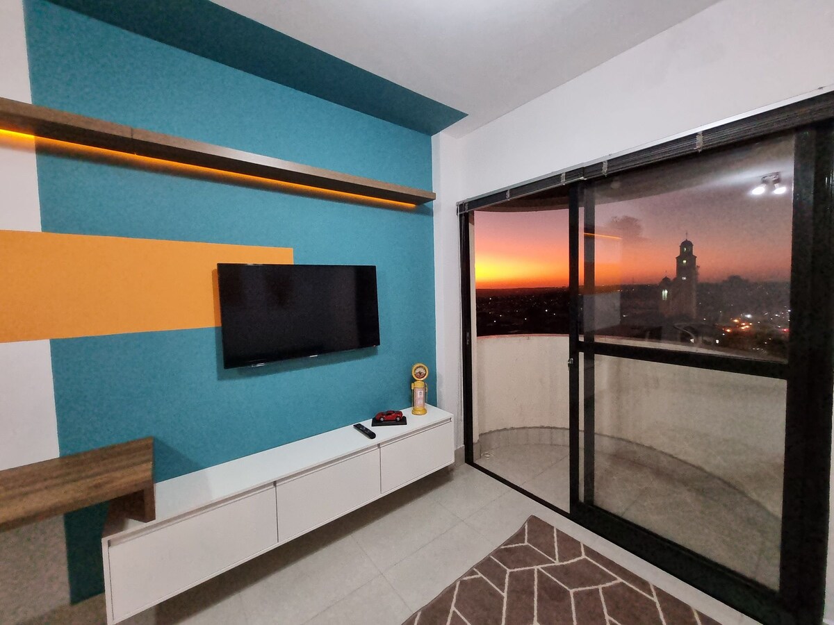 39 m2:n yksiö, katunäkymä, varjoinen puoli, queen-vuode + vuodesohva. Majoittaa mukavasti 2 aikuista ja 2 lasta tai jopa 3 aikuista. Ilmastointi ja kaikki perusvälineet, ilmainen pysäköinti. Sijaitsee Marilian parhaalla alueella, Avenida das Esmeraldasin vieressä, lähellä supermarketteja, baareja, ravintoloita, kauneussalongeja ja apteekkeja. Rakennuksen yhteisössä on myös yhteistyötila, kuntosali ja ilmainen pesula.