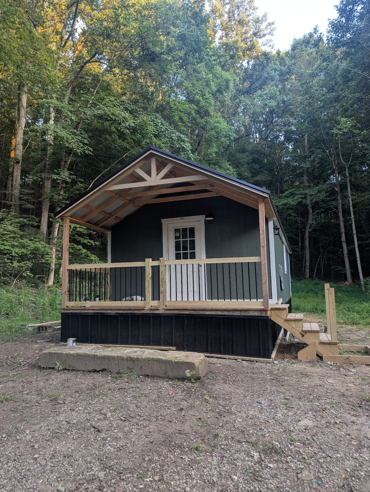 Nestled in the trees high above the water, the Overlook Cabin offers a peaceful, comfortable, and intimate experience of the Ohio River, with a large riverfront window, 8x12ft deck, & jacuzzi bath. The 12x40ft space has a queen, 2 twins, another bed in the loft, and a couch, and would be great for families, hunters, or couples. Local coffee provided. Owners live onsite should any issues arise. Pet friendly. Free wi-fi available.