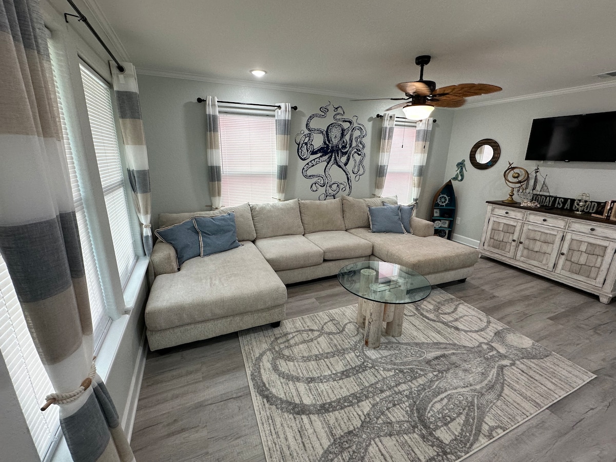 DECEMBER OFF PEAK DISCOUNTS!! This charming beach house is perfectly designed for families & relaxed coastal getaways, this bright and inviting home features tasteful beach-inspired décor throughout. Step outside to enjoy four spacious decks offering breathtaking views of both the Gulf and the bay — ideal for morning coffee or sunset cocktails.