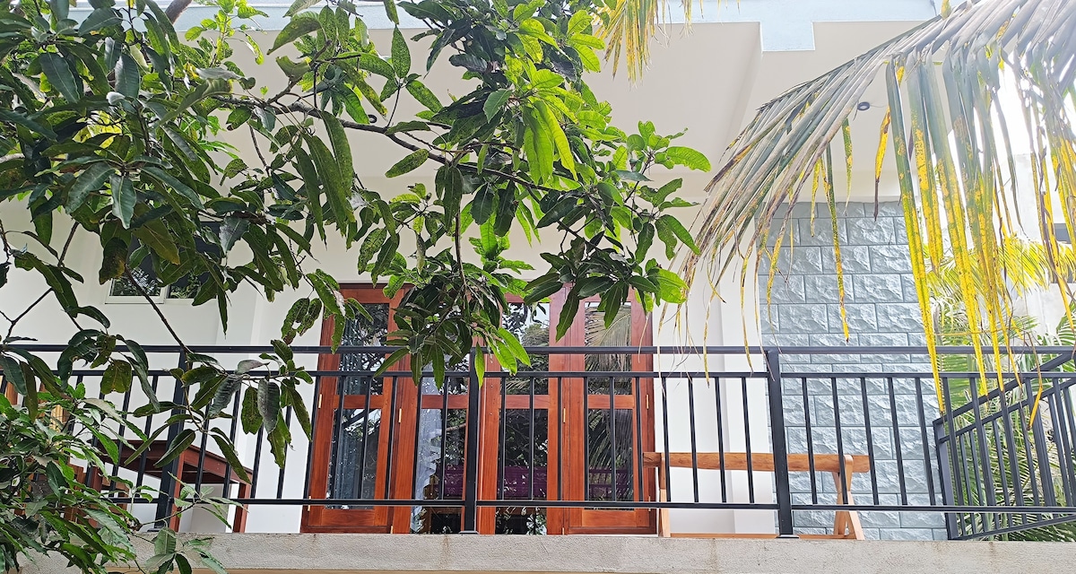 #TS2W me olemme Turtle- Surfer- ja Whale-Watching Treehouses and Villas Madiha/Mirissa - ympäröimme pieni mäki, trooppinen viidakko ja yksityinen rantapuutarha Äskettäin rakennettu bungalow, jossa on erityisiä luonnollisia tiiliä, jotka pitävät sisätilat viileinä. Enintään 4 henkilöä – 2 makuuhuonetta, joissa on ilmastointi ja oma kylpyhuone täysin varustettu keittiö - kahvibaari auringonnousun aikaan - ulkopuolella sademetsäsuihku - kaunis terassi - WiFi - ja yövartija