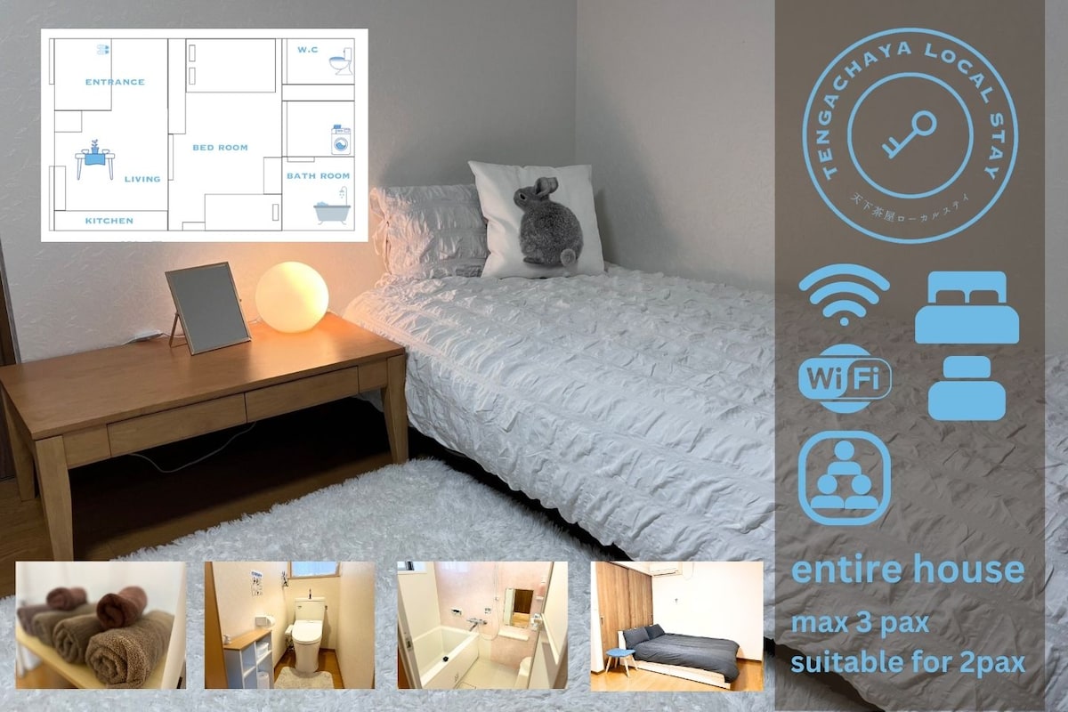 KIX&Namba Direct Tengachaya 7 min koko 3 makuuhuonetta 1 makuuhuone 2 wc