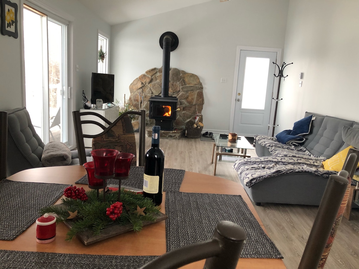 Viihtyisä kolmionmuotoinen mökki lähellä Mont-Tremblantia