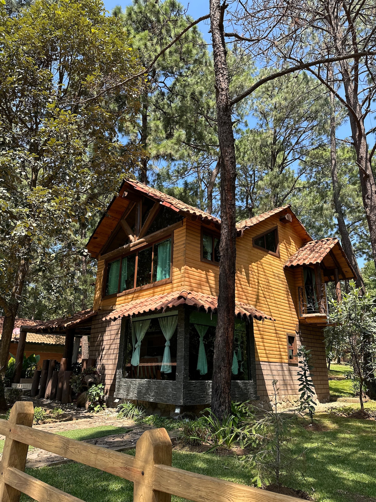 Relájate en este espacio tan tranquilo y elegante, Disfruta del encantador entorno de esta romántica Cabaña Prieta. Se encuentra ubicado a 5 km de la plaza principal, esta rodeada de enormes pinos, cuenta con acabados de lujo, Cocina equipada, Jacuzzi, Terraza con vista Panoramica, TV con sistema Dish. Todo lo necesario para que pases un agradable noche con tu pareja en la naturaleza.