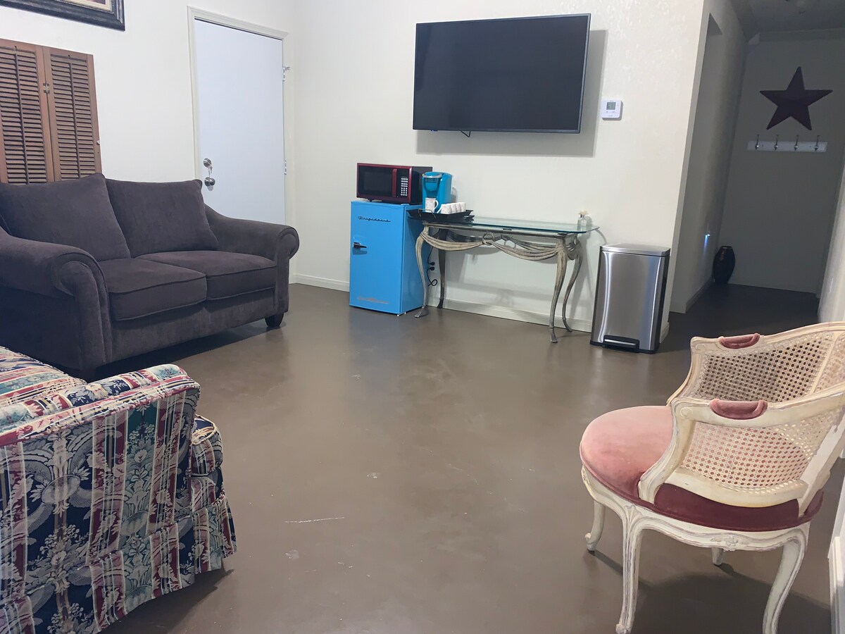 Kauniisti sisustettu, kätevästi sijaitseva, tilava anoppisviitti, jossa on yksityinen sisäänkäynti. Ihanteellinen kahdelle! Sisältää äskettäin remontoidun täydellisen keittiön, jossa on kaikki uudet laitteet. 2 minuuttia Little Shop on Bosque & For Keeps Coffee -kahvilaan 11 minuuttia Magnoliaan 14 minuuttia Baylorin yliopistoon Hauskan päivän jälkeen voit palata ja nauttia WiFi-yhteydestä ja älytelevisiosta, jossa on paljon katseluvaihtoehtoja. Nauti kaikesta, mitä Wacolla on tarjottavana! Sopii hyvin rentoutumiseen Baylor-viikonloppuna, ostosten tekemiseen Silosissa tai Lake Wacon nauttimiseen.