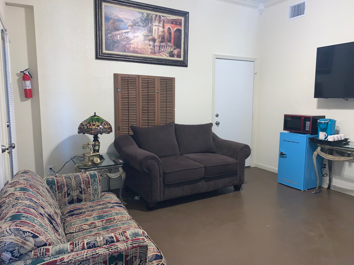 Unohda huolesi tässä tilavassa ja rauhallisessa tilassa rauhallisella paikalla aivan I-35:n varrella. Uusi vierassviitti modernilla suunnittelulla. Hyvä paikka yöksi, viikoksi tai kuukaudeksi. Ei pääsyä autotalliin.