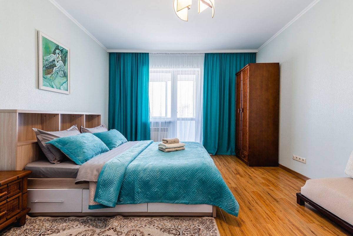 Tämä 50 neliömetrin yksiö sijaitsee kaupungin sydämessä. Se sijaitsee klassisessa neuvostoajan rakennuksessa vuodelta 1971, ja sieltä on upeat näkymät kaupungin taivaanrantaan, vuorille, TV-torniin, Kok Tobeen ja ikoniseen Hotel Kazakhstaniin. Naapurusto on sekä turvallinen että vilkas, mikä tekee siitä ihanteellisen lyhyille lomille tai pidemmille majoittumisille. Huoneisto on täysin varustettu kaikilla välttämättömyystarvikkeilla, jotta majoittuminen on sujuvaa ja miellyttävää.