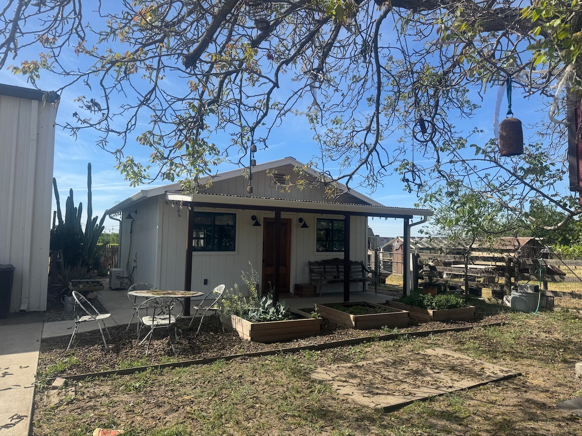 Viihtyisä, yksityinen vierasmaja pienessä lännessä sijaitsevassa kaupungissa. Sinulla on oma keittiö, riippumatto, 1 queen-size-vuode, 1 yhden hengen vuode (xs), WiFi, TV/Netflix, ilmastointi, oma erillinen sisäänkäynti ja valinnainen vauvansänky neljännelle vieraalle. Mökki on hyvin varusteltu, puhdas, äskettäin rakennettu ja sijaitsee rauhallisella alueella, jossa voi levätä hyvin. Vieraile viinitiloilla, ympäröivissä historiallisissa kaupungeissa, Shaver-järvellä, Yosemitessa. Se sijaitsee Kalifornian keskellä, ja se on ihanteellinen paikka jatkaa matkoja kansallispuistoihin, rannoille ja suurempiin kaupunkeihin.