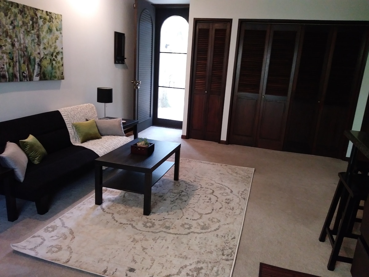 Yksityinen vierasmaja, joka on äskettäin remontoitu. Yksi makuuhuone queen-vuoteella, kylpyhuone suihkulla, täysin varusteltu keittiö, mukaan lukien mikroaaltouuni ja Keurig-kahvinkeittimen kapselit, perhehuoneen TV ja WiFi. Olitpa kaupungissa työn, urheilukilpailun, perheen tai vain loman takia, tarjoamme kaikki kodin mukavuudet. Ilmapatja saatavilla pyynnöstä. Kohtele kuin omaa kotiasi, noudata kaikkia talon sääntöjä. Ei juhlia tai kokoontumisia. Tämä on savuton koti.