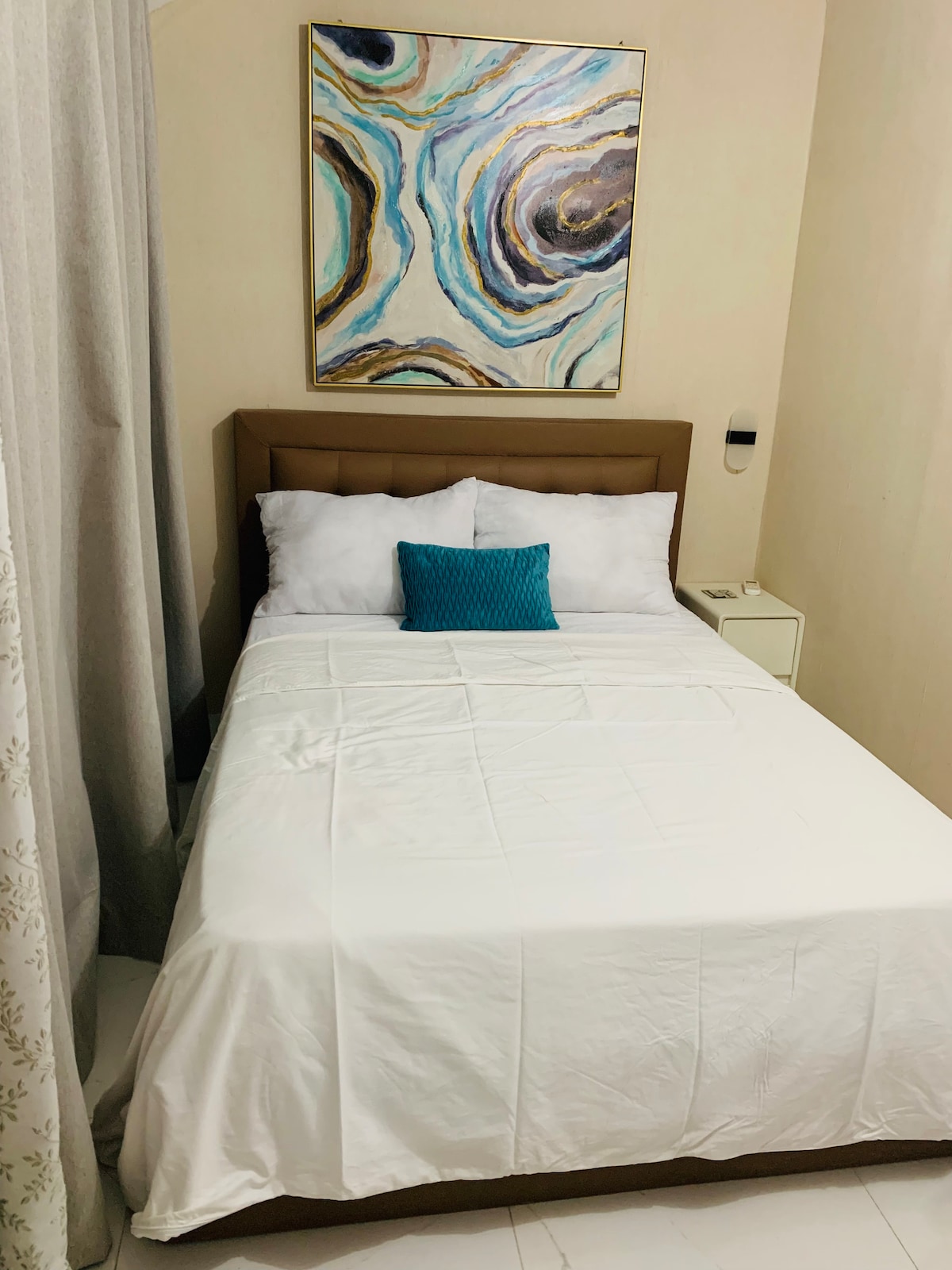 Voit unohtaa huolesi tässä tilavassa ja rauhallisessa kohteessa, joka on tehty vain kaltaisillesi VIP-tyypeille. Tämä kattohuoneisto sijaitsee Kandi Palacen ylimmässä kerroksessa, jossa on suuri parveke ja 180 asteen näkymä vuorelle. Arayat-tulivuorelle, ja voit nauttia Angeles Cityn valoista. Tämä huoneisto on suunniteltu seuraavasti: ✅️ Erinomaiset kalusteet ✅️ Täysin varustettu keittiö ✅️ 3 suurta televisiota, joissa on yli 2 000 kanavaa ✅️ Poreallas ✅️Ilmainen pääsy kuntosalille ✅️ Muutama askel Kandi Palacen katolla olevan kauniin uima-altaan ja laadukkaan ravintola.