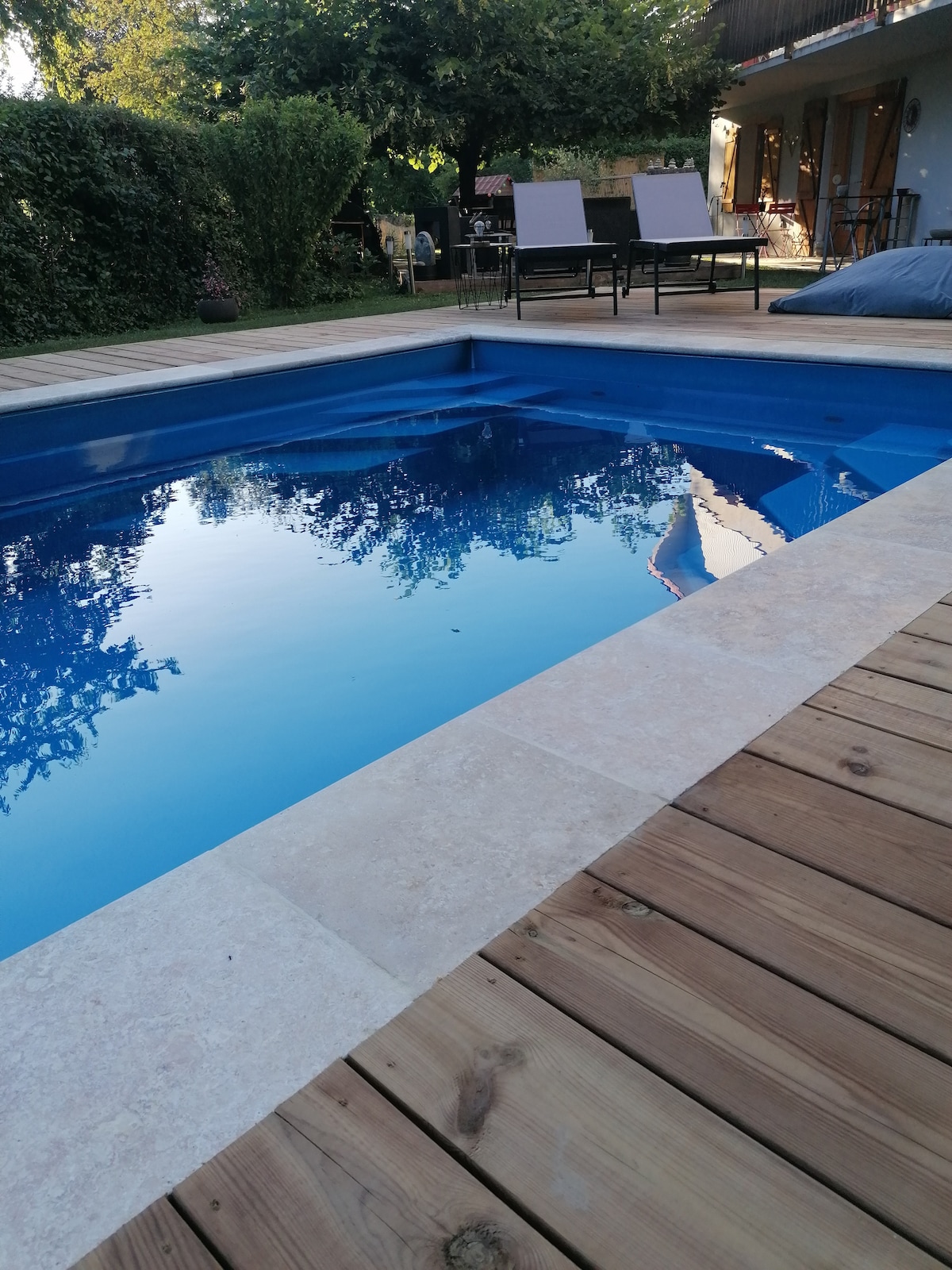 Lämmin uusi ja toimiva 35 m2:n yksiö sijaitsee talon pohjakerroksessa, jossa on erillinen sisäänkäynti ja suora pääsy suureen jaettuun puutarhaan, jossa on uima-allas 6,50 x 3,50. King-size-vuode (+ lisävuode pyynnöstä), kylpyhuone, wc, vaatehuone, pieni oleskelutila, keittiö, kahvinkeitin, jääkaappi, mikroaaltouuni, induktioliesi, astianpesukone, tv, wifi. Ihanteellinen kompromissi vuoristoretkien ja kaupunkikäyntien välillä. Grenoble 13 km, Laffreyn järvet 7 km, Chamrousse 30 km Vizillen linna 3 km