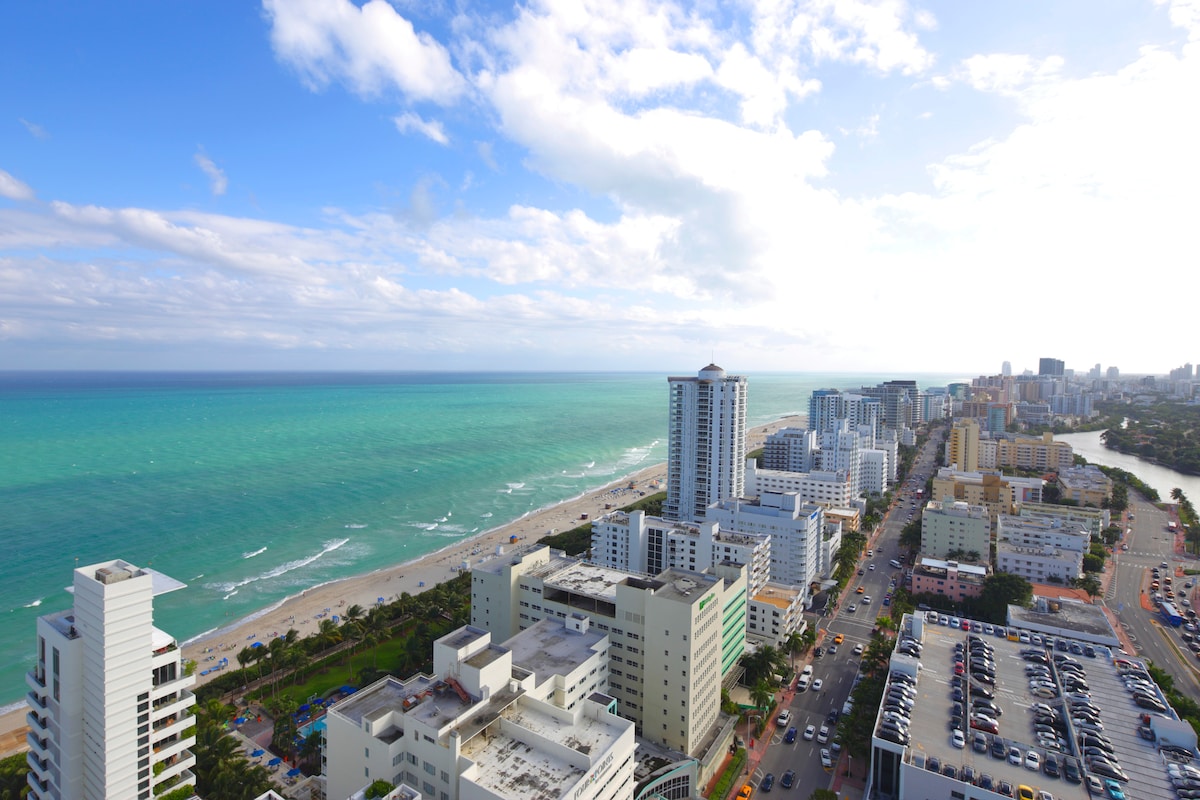 JALKAPALLON MAAILMANMESTARUUSKILPAILUT 2026: 25 minuutin ajomatka stadionille!!! Yhden makuuhuoneen asunto aivan rannalla. Valtava parveke, josta on näkymät rannalle 6. kerroksesta. Lyhyen ajomatkan päässä South Beachistä, jonne pääsee helposti julkisilla liikennevälineillä. Mukavuuksiin kuuluvat kuntosali, ulkouima-allas, grillialue ja tietenkin ranta. Parasta on, että tämä EI OLE hotelli, mutta saat hotellin mukavuudet. Elä kuin paikallinen omassa tilassasi. *rakennuksessa ja alueella tehdään joitain kosmeettisia päivityksiä. Pahoittelemme kaikkea rakennustöihin liittyvää ulkonäköä tai melua.*