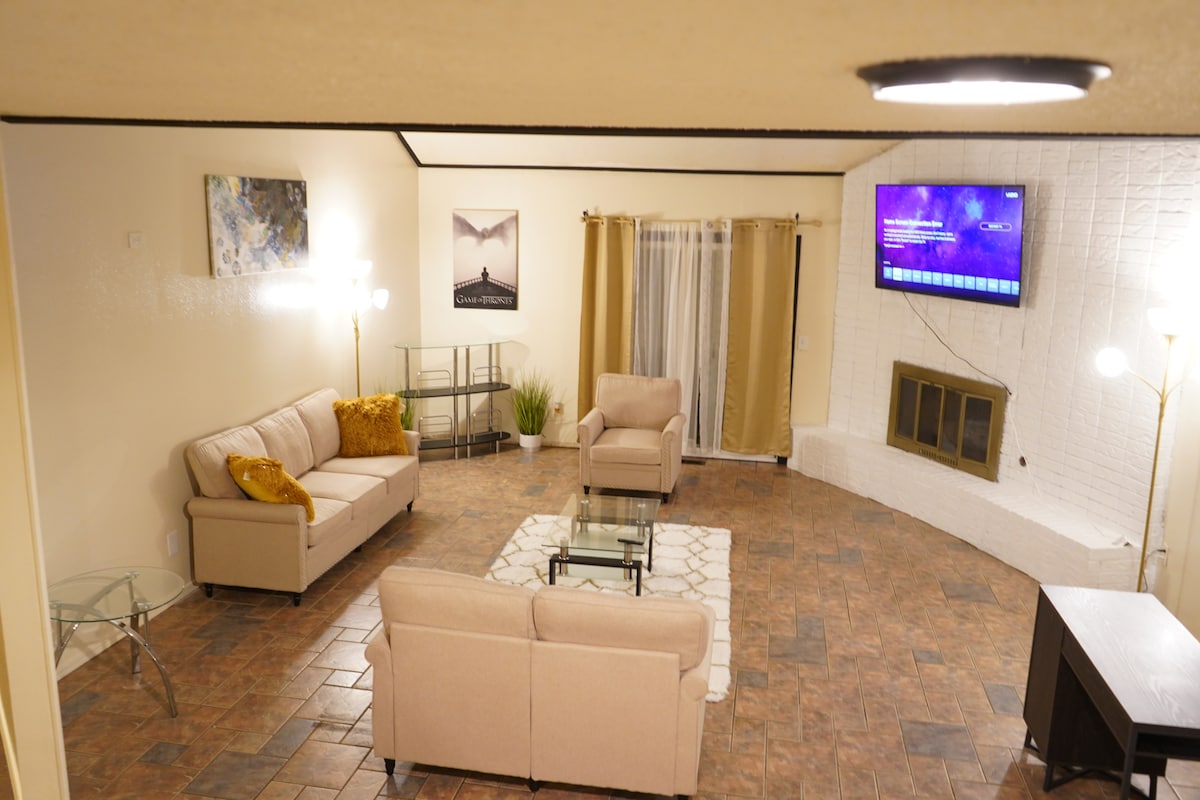 This is the perfect area if you are wanting to experience OKC and the Suburbs in one. Chisholm Charm is located 3 min from I-35 and John Kirkpatrick turnpike. This area is within 10 min of Edmond, Quail springs Mall, Lake Hefner, and Downtown Oklahoma City. Surrounding family oriented activities within 5 min of this area in are Top Golf, I- fly, Republic, Uncle Julio's Mexican, Fuzzy, Restaurant, Olive Garden, Lowe's, Home Depot, Cabela's, Main Event , Walmart, and Ross, etc.....