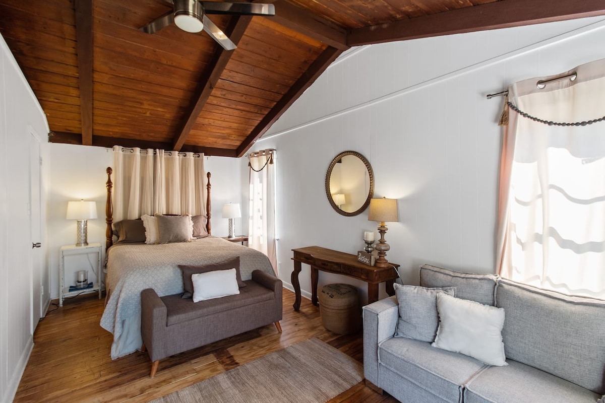 Tämä on paljon enemmän kuin yöpyminen, tämä on elämys. Tule maalle ja jätä kaikki taaksesi. Nauti ulkoilmasta tässä viehättävässä pienessä mökissä, jossa voit rentoutua ulkona täysin katetun kuistin alla. Nappaa kala, paista s'more tai silitä vuohta. Golfkärry käytettävissä kiertämiseen. Glamping parhaimmillaan. Lopulta jouduin antamaan periksi teknologialle ja lisäämään WiFin vieraille (ilmainen) ja lisäsin myös matkapuhelimen tehostimen parempaan ulkoiseen viestintään tarvittaessa. Uima-allas on nyt käytettävissä.