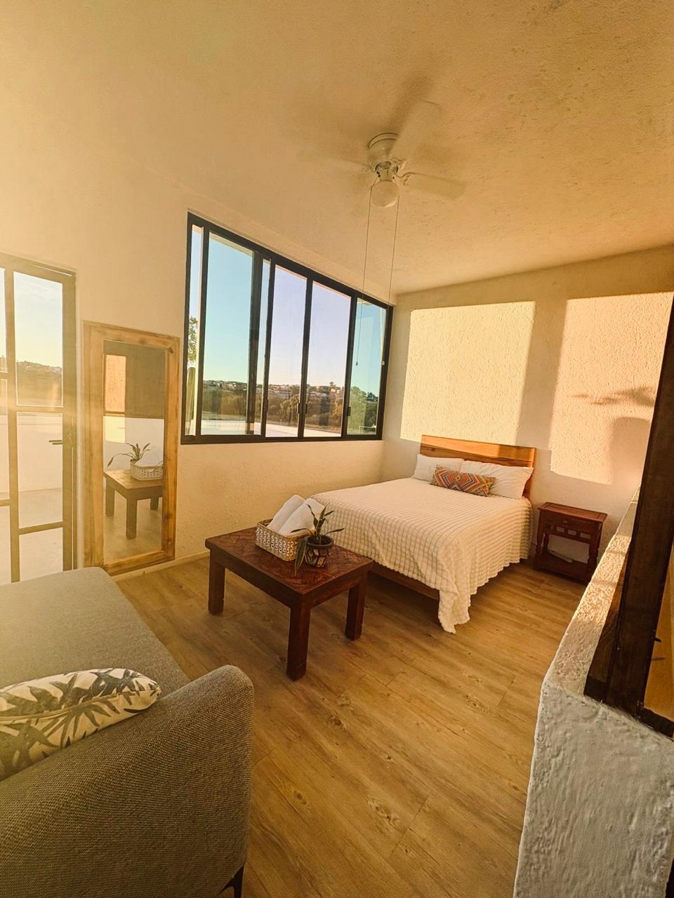 Koe boutique-elämys "Casa Olivosissa", joka on tyyneyden tyyssija vain 10 minuutin päässä San Miguel de Allenden vilkkaasta sydämestä. Kahden huoneen asuinpaikassamme yhdistyvät nykyaikainen suunnittelu ja mukavuus, kattopuutarha ja panoraamanäkymät sekä yleiset yhteiset tilat, kuten melontatenniskenttä, kuntosali, uima-allas ja leikkialue. Täydellinen tasapaino historiallisen keskustan kulttuurisen rikkauden ja condohuoneistomme rauhallisuuden välillä.