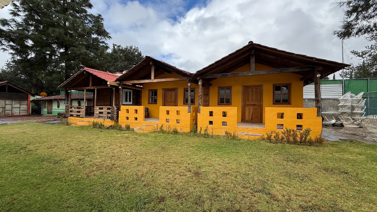 Rentoudu kauniissa mökissä, joka on ihanteellinen koko perheelle, hiljaisessa ympäristössä lähellä metsää. Se sijaitsee 6 minuutin ajomatkan ja 15 minuutin kävelymatkan päässä Real del Monten historiallisesta keskustasta, taianomaisesta ja vanhasta kaivoskaupungista, ja hyvin lähellä Mineral del Chicoa ja Huascaa, kahta Hidalon taianomaista kaupunkia.