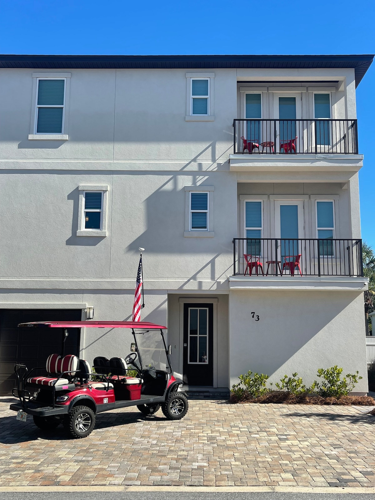 🏖️ Tervetuloa täydelliseen rantalomaan ylellisessä rivitalossamme Gulf Walk -yhteisössä! Täydellinen loma odottaa sinua vain lyhyen 5 minuutin kävelymatkan päässä Floridan upeista valkohiekkarannoista ja vain hetken päässä ensiluokkaisista ostos- ja ruokapaikoista. Vain muutaman askeleen päässä jauhemaisen pehmeistä rannoista, hienoista ravintoloista ja huippuluokan kaupoista. Sukella kimaltelevaan uima-altaaseemme aivan takapatiosi ulkopuolella tai nauti eeppisestä pelihuoneestamme, jossa on ilmakiekkoa ja pöytäjalkapalloa. Lemmikkiystävällinen.