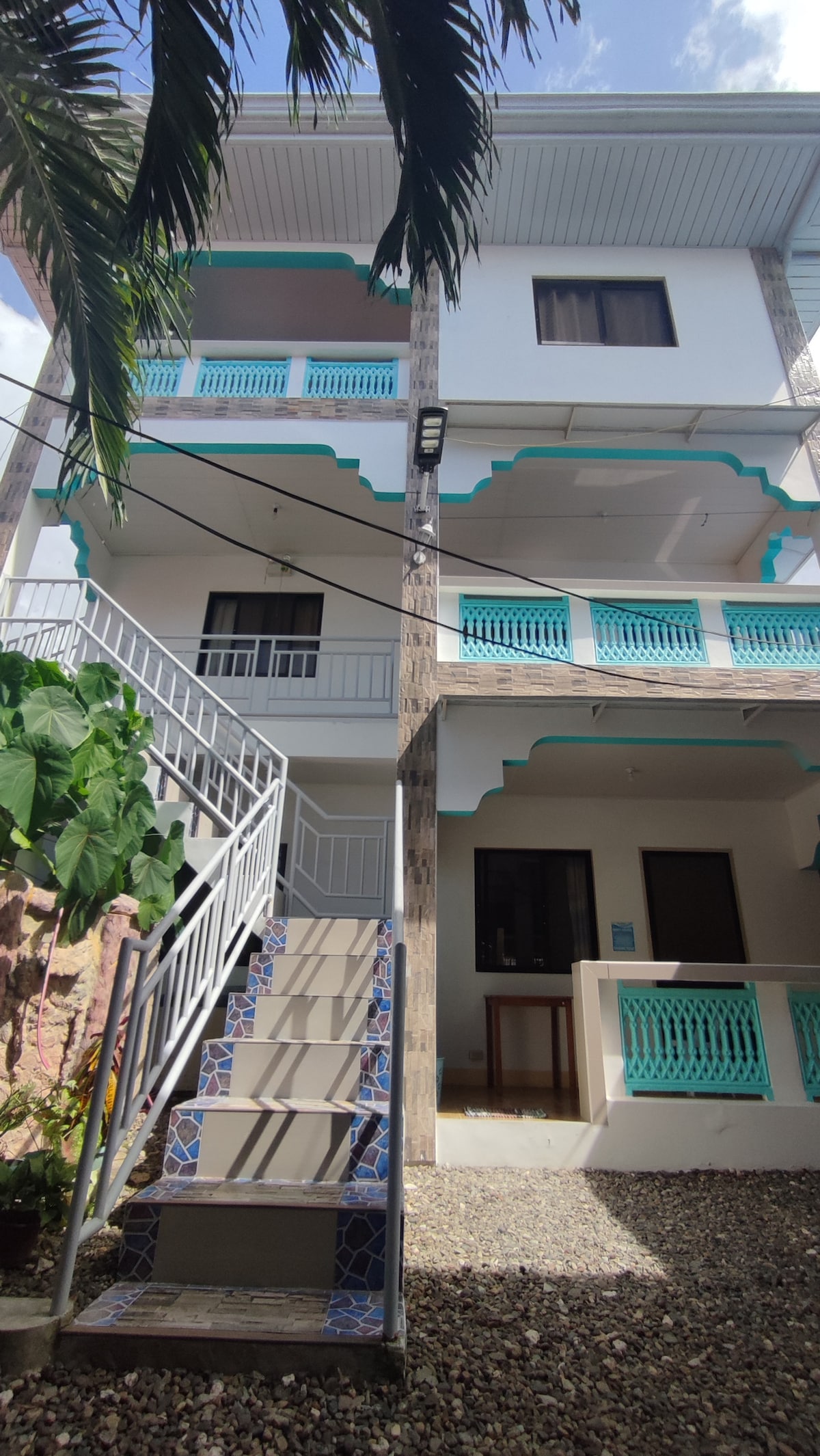 Tässä pohjakerroksessa sijaitsevassa, yhden tason, itsenäisessä huoneistossa on yksi queen-size-vuode, oma suihkuhuone, keittiö, jääkaappi, ilmastointi, kaapeli-TV, Wi-Fi ja oma terassi/patio.Huoneisto sijaitsee rauhallisella, aidatulla muurien ympäröimällä alueella Moalboalin kaupungin ja Panagsaman ranta-alueiden puolivälissä, joten se on kätevästi sekä rannalle että kaupunkiin nähden.Meillä on sisarhotelli rannalla, jossa vieraat voivat nauttia ilmaisesta pysäköinnistä ja ravintola-baaristamme.Vieraat voivat turvallisesti jättää tavaransa uimaan.