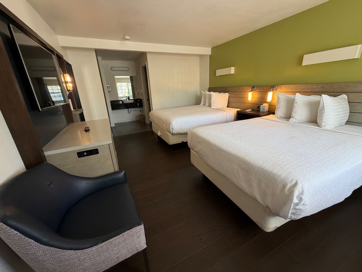 Esteetön Two Queen Room on kooltaan noin 455 neliömetriä, ja siellä on kaksi queen-vuodetta. Huoneessa on pehmeät ja kiinteät tyynyt, paikallisen Monterey-patjan patja ja eurooppalaistyyliset vuodevaatteet. Huoneessa on oma kylpyhuone, jossa on kylpyamme, Keurig-kahvinkeitin, jääkaappi, mikroaaltouuni, hiustenkuivaaja, HD-satelliittitelevisio. Tilavassa 2 Queen-huoneessa on keittiön työtaso. Esteettömään kahden kuningattaren huoneeseen mahtuu mukavasti korkeintaan 4 aikuista ja 2 lasta.