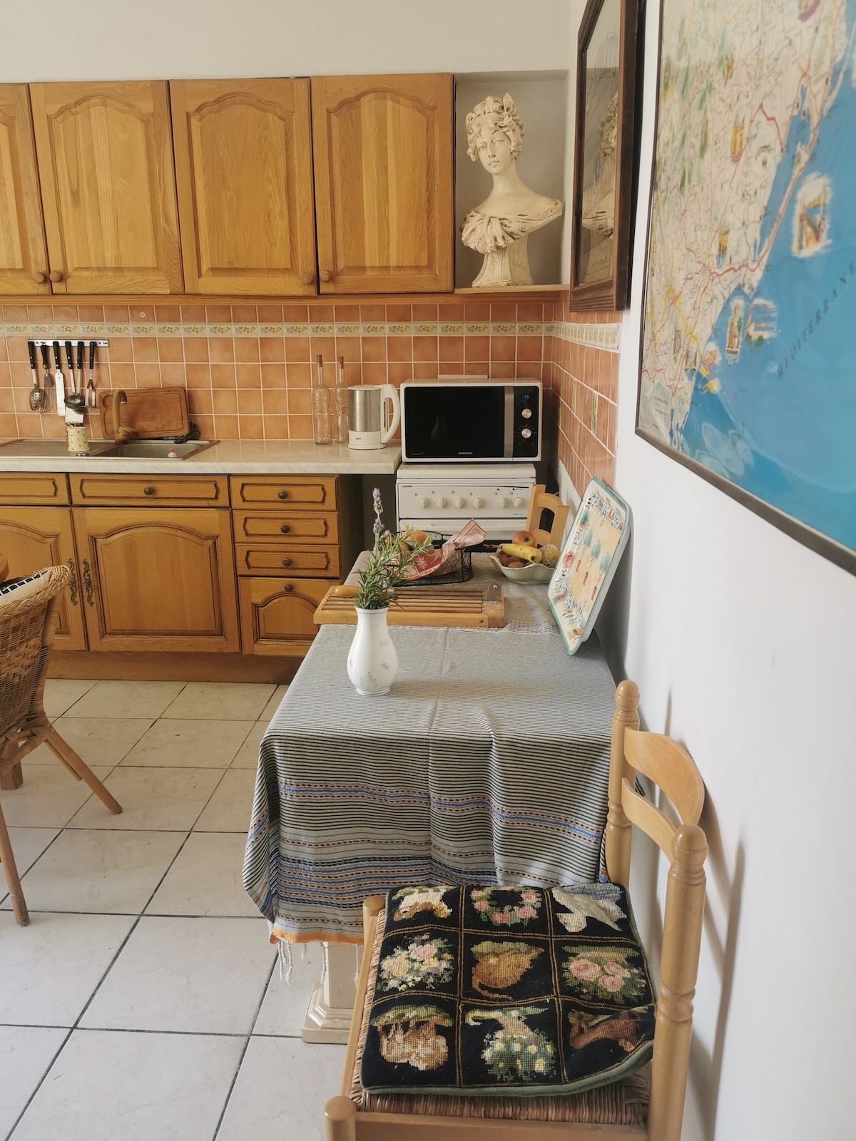 Chambre dans un bâtiment indépendant qui servait d'écurie pour les vignerons. Calme garanti et le tout de rez de chaussée. Le patio est très agréable en été et donne vers une impasse. Un repas sous le soleil bleu ? Même une cuisine est à votre disposition. Espace de travail Wifi. En été, je prépare le petit déjeuner sur notre grande terrasse plein de plantes et de fleurs. Comprenant pain, croissants, confiture et même de la charcuterie pour ceux qui aiment.