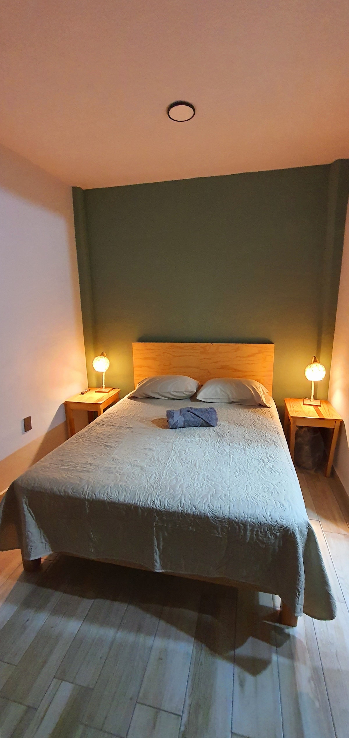 Disfruta habitación nueva en el corazón de Tepoztlán, perfecta para descansar con tranquilidad, privacidad y buena vibra. Disfruta de una increíble vista al Cerro del Tepozteco desde la terraza techada. Espacio luminoso, limpio y acogedor, ideal para desconectar o vivir una escapada romántica. Incluye estacionamiento, para que disfrutes sin preocupaciones. ¡Vive Tepoztlán desde éste lugar especial! a 5 minutos a pie : del Mercado Municipal museo Carlos PELLICER Bancomer Parroquia Ex convento