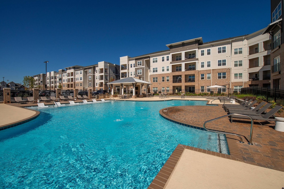 Enjoy a stylish experience at this centrally-located place. Relax, recharge, and enjoy premium accommodations at Outfield Oasis, a modern 1-bedroom apartment located in Ballpark Apartments at Town Madison — the perfect stay for traveling nurses, engineers, or visitors to Huntsville. Just steps from Toyota Field, this centrally located, Airbnb-friendly end unit offers stylish comfort with resort-style amenities, elevator access, and close proximity to dining, entertainment, and nature.