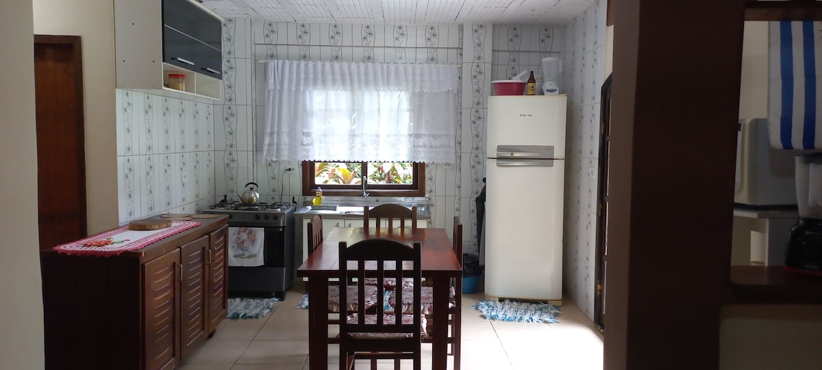 Sekalainen talo, puuta ja muuraus, luonnollinen vesiallas suoraan Serralta... gourmet-alue grillillä... puuhella... Kaunis näkymä Serra do Marille. Yksinkertainen mutta viihtyisä talo, puhdas, tuulettimet kaikissa huoneissa, erittäin hiljainen paikka, helppo pääsy asfaltin reunalle. Nyt meillä on myös viihtyisä nurkka kylmiä talvipäiviä varten, jossa lämmittää tulen ja syödä männynkäpyjä lautaselta ja paahtaa maissia grillissä. Meillä on myös älytelevisio.