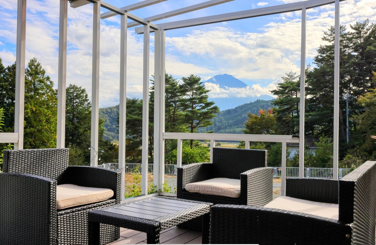 富士山河口湖眺望のコンテナハウス・ヴィラ 貸切 BBQ(森林側のお部屋。富士山が少し隠れます。