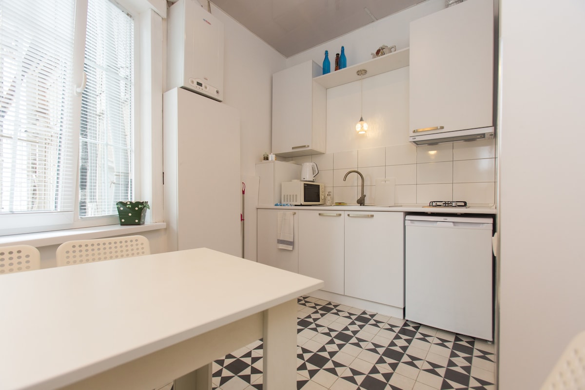 The best location in Downtown, fully arranged with old city spirit and art inspiration. The whole place has nice "shabby chic" look. It is located under the roof on the third floor. You can look out to the four sides of the neighborhood. The house is part of Georgian culture heritage. And the district itself is historical, full of stories and events. Rooms are wide, living room 30 squares meter. My neighbors are also engaged in art and museums. We call Kuftin 7 "the artists house".