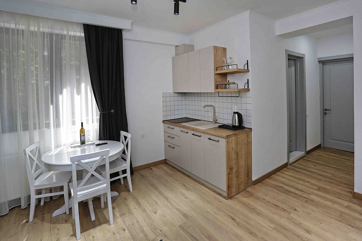 Huoneisto sijaitsee äskettäin kunnostetussa historiallisessa rakennuksessa vanhankaupungin sydämessä, joka on Tbilisin turistikeskus. Metro Freedom Square on 150 metrin päässä, Rustaveli av. on 3 minuutin kävelymatkan päässä. Se tarjoaa laadukkaan hotellin mukavuuden, makuuhuoneessa on king-vuode ja toisessa huoneessa vuodesohva, 24 tunnin sisäänkirjautumisen ja majoittajan lämpimän vastaanoton. Siellä on WiFi, älytelevisio, jossa on kansainväliset kanavat, ilmastointilaite, pesukone, astianpesukone, kaikki kylpyhuoneen ja keittiön välttämättömät tarvikkeet.