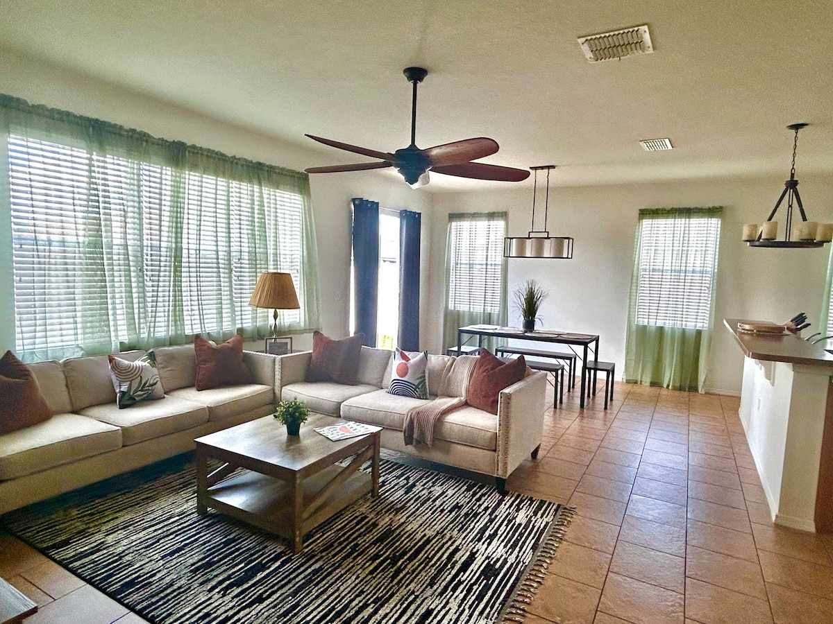 🌿 Tervetuloa The Green Haveniin, viihtyisään ja moderniin lomakohteeseen Lakelandissa. Kohteessa on kaksi makuuhuonetta, kylpyhuone, jossa on sadesuihku, täysin varusteltu keittiö ja oma patio, joten se sopii perheille, pariskunnille tai ammattilaisille. Nauti nopeasta wifistä, älytelevisiosta, työtilasta ja lautapeleistä. Alle 10 minuutin päässä lentokentältä ja Sun 'n Fun Aerospace Expo -tapahtumasta (14.–19. huhtikuuta 2026) ja lähellä Bonnet Springs Parkia, ravintoloita ja kauppoja.