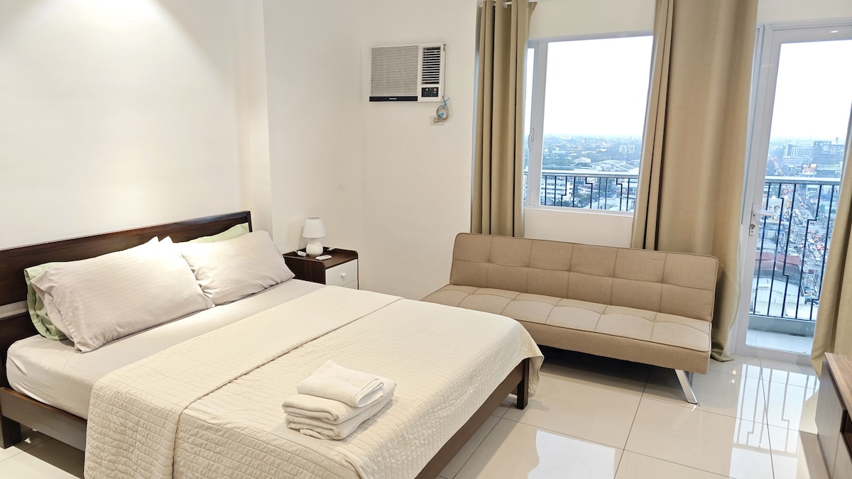 Nauti hotellityylisen asumisen mukavuudesta täysin varustetussa yksiössä! Puhtaat, modernit tilamme ovat täydellisiä liikematkailijoille, pariskunnille tai yksin matkustaville seikkailijoille, jotka haluavat olla lähellä kaikkea, mitä Bacolod tarjoaa. • Silayn lentoasema – 25 minuutin ajomatka •SM Bacolod Mall - 5 minuuttia • L'Fisher and Seda Hotel - 5 minuuttia • McDonald's, Jollibee ja Calea ovat kävelymatkan päässä • Ayala Mall kadun toisella puolella