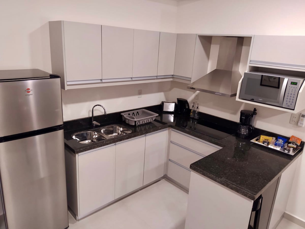 🛎️Vastaanotto on avoinna ympäri vuorokauden. Täysin varusteltu yhden makuuhuoneen huoneisto, joka sijaitsee Asunciónin keskustassa. Kauniit näkymät kaikista huoneista. Siinä on makuuhuone, kylpyhuone, pukuhuone, olohuone, ruokailuhuone, keittiö ja pyykinpesutila (jaettu tila). Erityisesti sekä lyhyille että pitkille majoittumisille. Huoneistossa on 1 älytelevisio, Wi-Fi-internet, king-size-vuode, pukuhuone, hiustenkuivaaja, pyyhkeet, vuodevaatteet, kaikki ruoanlaittamiseen tarvittava, silitysrauta.