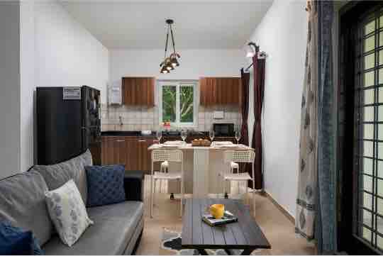 At Ananta Collective, Experience North Goa at its finest in this beautifully designed 1BHK luxury apartment nestled in the serene neighborhood of Nerul, just minutes away from Candolim, Coco, and SinQ Beach. Step into a world of modern interiors, elegant finishes, and thoughtful details that blend comfort with style. The apartment features a spacious living area, a fully equipped kitchen, and a cozy bedroom with premium bedding — perfect for couples or small families seeking a relaxing getaway.