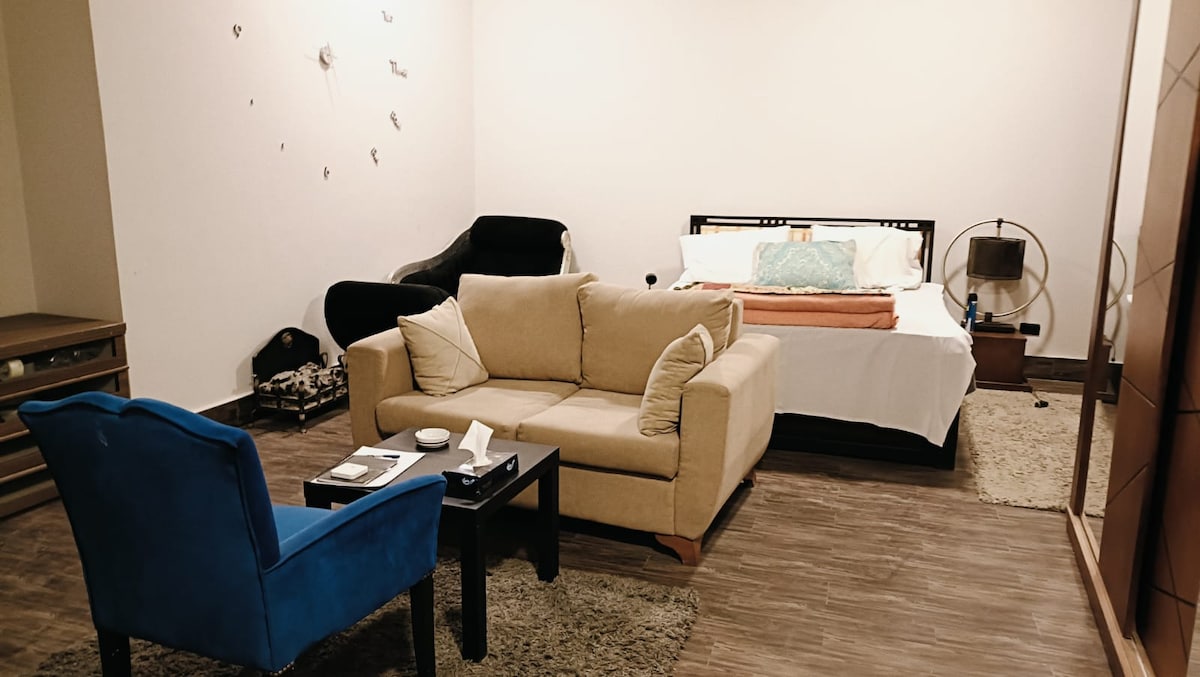 Enjoy a stylish stay in the heart of Nasr City. This centrally-located apartment offers an unbeatable location, 4 minutes from City Stars, and 3 minutes from Genena Mall. You’re only 15 minutes away from Downtown Cairo and around 30 minutes from the Great Pyramids. , a nearby garden perfect for kids, and easy access to shops, restaurants, and entertainment spots. Whether you’re visiting for business or leisure, you’ll find everythin u need within reach in a quiet, secure, married couples only