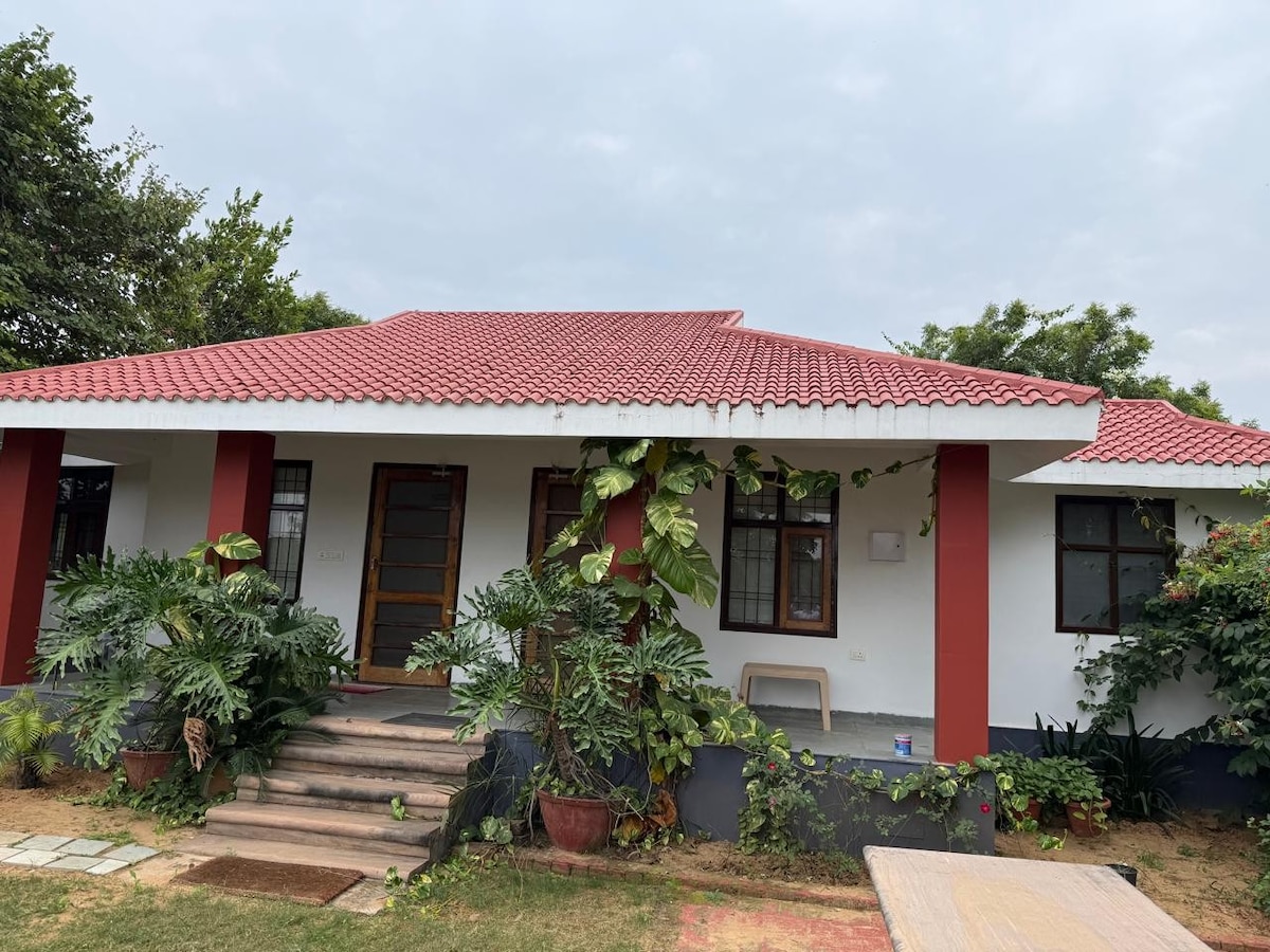 Rentoudu linnunlaulun äänessä majoittuessasi Luomo/Shri Ram Upvanissa, maatilalla, jossa perheemme Delhistä harjoittaa luonnonmukaista maataloutta. Nauti oppimisesta erilaisten viljelykasvien, hedelmien ja vihannesten viljelystä, kun kävelet maatilojen läpi iltakävelylläsi. Makean veden uima-allas odottaa sinua. (Käytämme kaiken veden uudelleen kasveillemme myöhemmin) Tyylikkäästi suunniteltu talo pitää sinut yhteydessä ulkoilmaan suurten lasi-ikkunoiden kautta, joista on näkymät maatilalle ja rauhallisille vuorille.