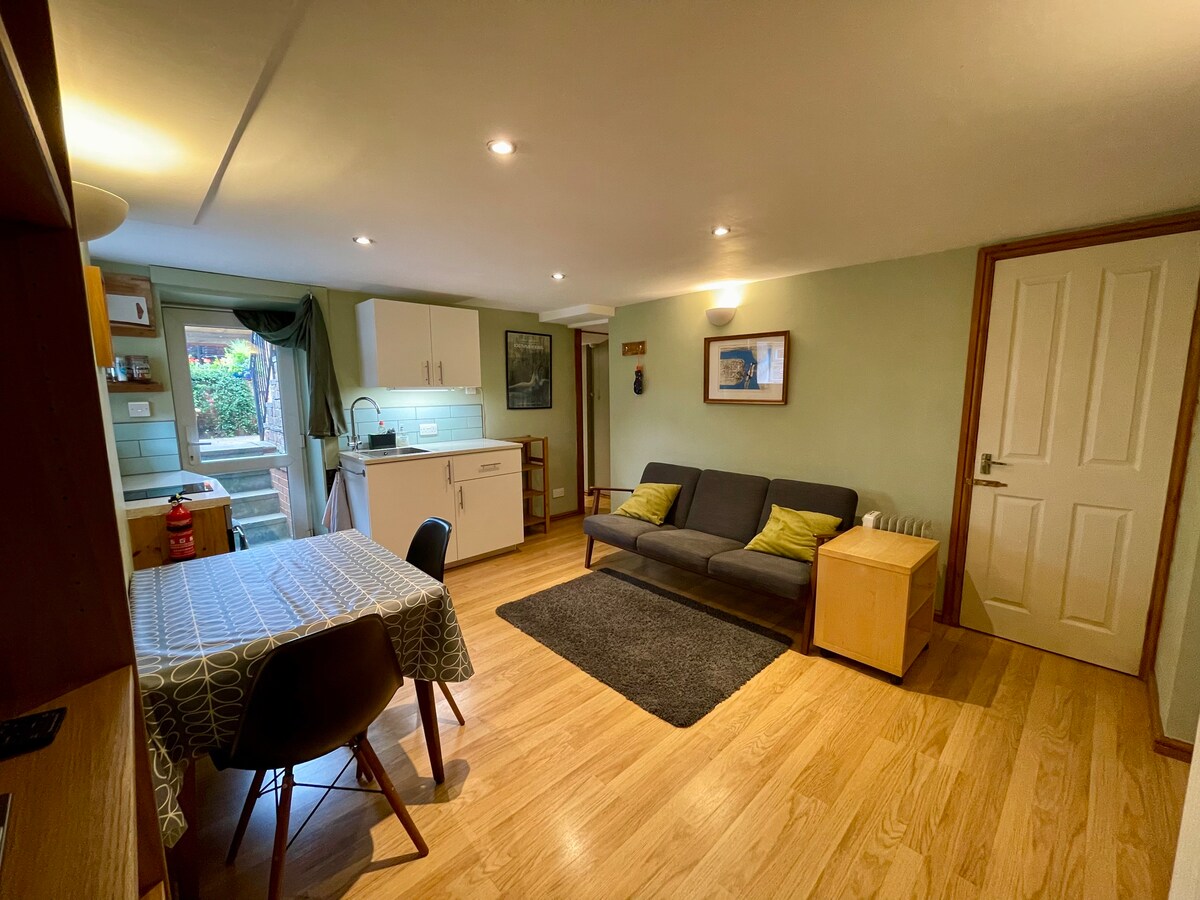 Tervetuloa Rivelin Studion rauhaan ja hiljaisuuteen. Sen vintage-tyylinen, kierrätetty viehätys on saanut inspiraationsa sijainnistaan, perheperinnöstämme ja Arts & Craft -ajasta, jolloin kotimme rakennettiin. Äskettäin kunnostetussa, lemmikkiystävällisessä huoneistossamme on keittiö, suihkutila ja syvä kylpyamme, joka on ihanteellinen kylpemiseen. Rivelin sijaitsee maaseudulla, josta on upeat näkymät, mutta lähellä on yliopistoja ja sairaaloita, joten Rivelin sopii yhtä hyvin ammattilaisille, perhevierailuille tai niille, jotka haluavat rentouttavan loman!