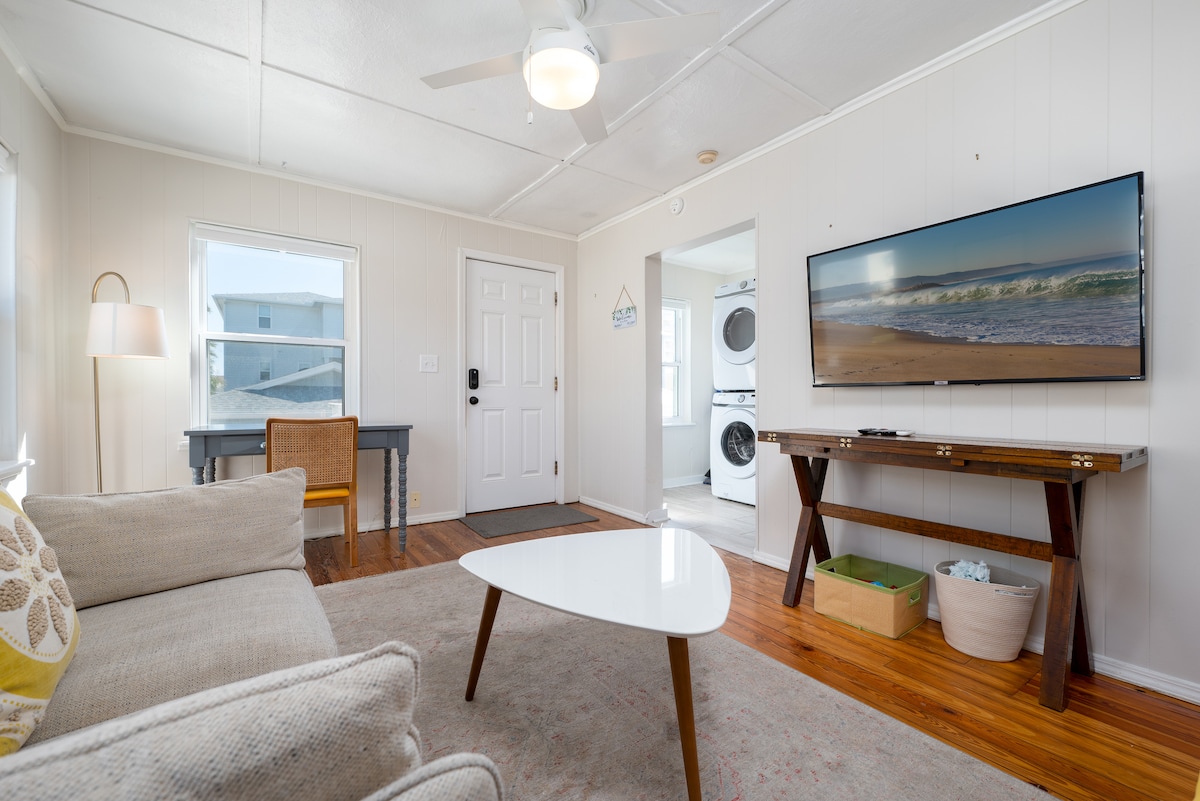 Tämä söpö tila on liitetty kotiimme, mutta siellä on täydellinen yksityisyys. Siellä on yksi makuuhuone, jossa on yksi queen-vuode. Olohuoneessa on kaksinainen noja-istuin ja tuoli, joten on mukavaa katsella televisiota tai istua takan ääressä viileinä iltoina. Pääasiallisessa oleskelutilassa on myös pöytä ja tuolit aterioiden nauttimiseen tai työtilana käytettäväksi. Keittokomero, jossa on Keurig-kahvinkeitin, kahvia, mikroaaltouuni, leivänpaahdin ja minijääkaappi. Huoneistossa on keittotaso. Erinomainen sijainti vain 6 korttelia rannasta.