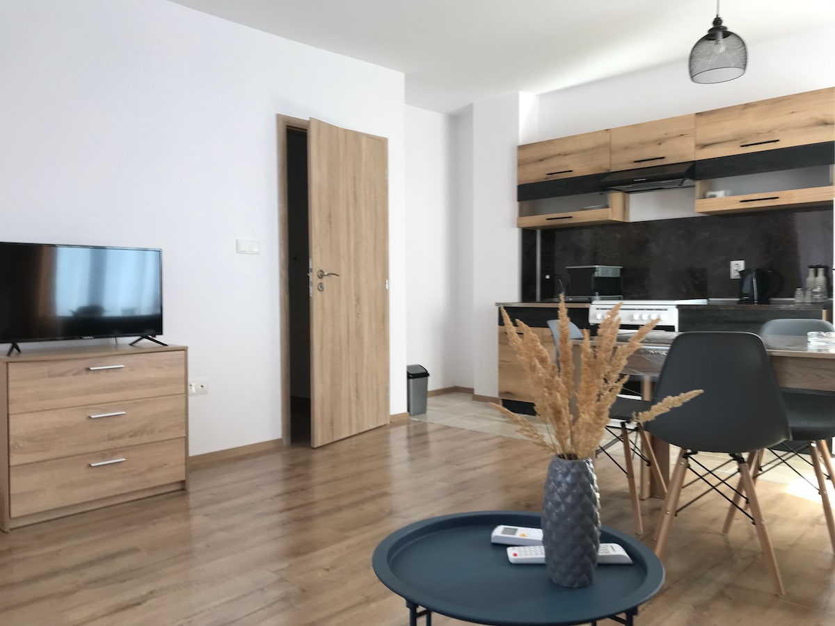 Poikkeuksellisen kaunis huoneisto Nessebar Cityssä. 5 minuutin kävelymatka South Beachistä ja 10 minuutin kävelymatka Sunny Beachistä, 15 minuutin kävelymatka Nessebarin vanhaan kaupunkiin, ostoskatu, ravintoloita ja supermarketteja kulman takana. Huoneisto on hyvin varustettu, 2 kahden hengen makuuhuonetta, avokeittiö, kylpyhuone pienenä hyvinvointialueena. Tilavalla 20 neliömetrin terassilla, jossa on aurinkosuoja, voit viettää aikaa häiriöttömästi Nessebarin katoilla, joista on näkymät Balkanille.