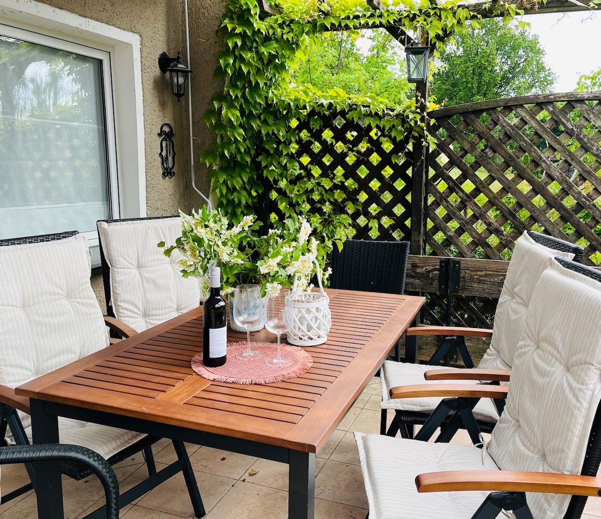 Kodikas, tyylikkäästi kalustettu huoneisto, idyllisellä, rauhallisella kylän paikalla, sijaitsee historiallisessa maalaistalossa, rakastavasti remontoitu luonnonmateriaaleista, kauniilla tilavalla puutarhalla. Nauti lumoavan maaseutuympäristön rauhallisuudesta ja kauneudesta. Brandenburgin kaunis maisema, joka on pystynyt säilyttämään luonnollisuutensa lukuisten järvien ja metsiensä ansiosta, kutsuu sinut pyöräilemään, patikoimaan, veneilemään ja uimaan.