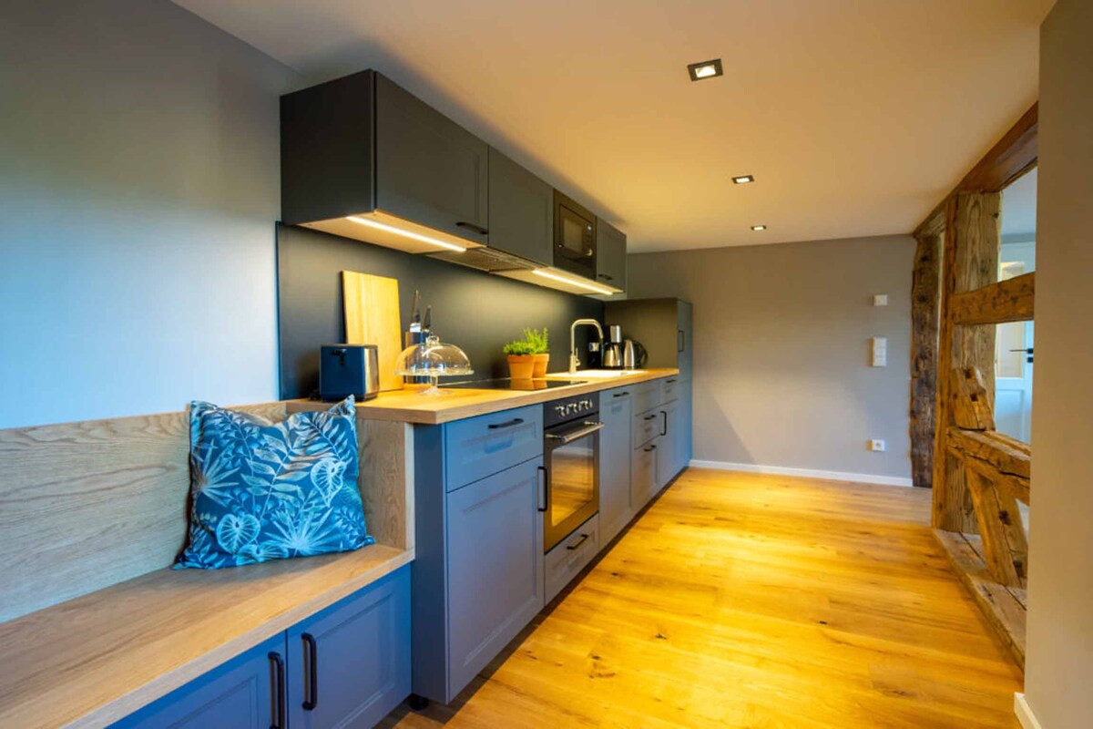 Jyväkammio sijaitalo sijaitsee vuonna 1794 rakennetun tilan ullakossa. Tilusta on tehty suojelukohde ja se on kunnostettu ekologisesti. Kestävä kehitys on meille tärkeää – sähkö ja lämpö ovat 100-prosenttisesti peräisin uusiutuvista energialähteistä. Huoneisto on rapattu vanhan mallin mukaan kalkilla ja savella. Lisäksi puu ja erittäin hyvä eristys edistävät miellyttävää asuinympäristöä ympäri vuoden.