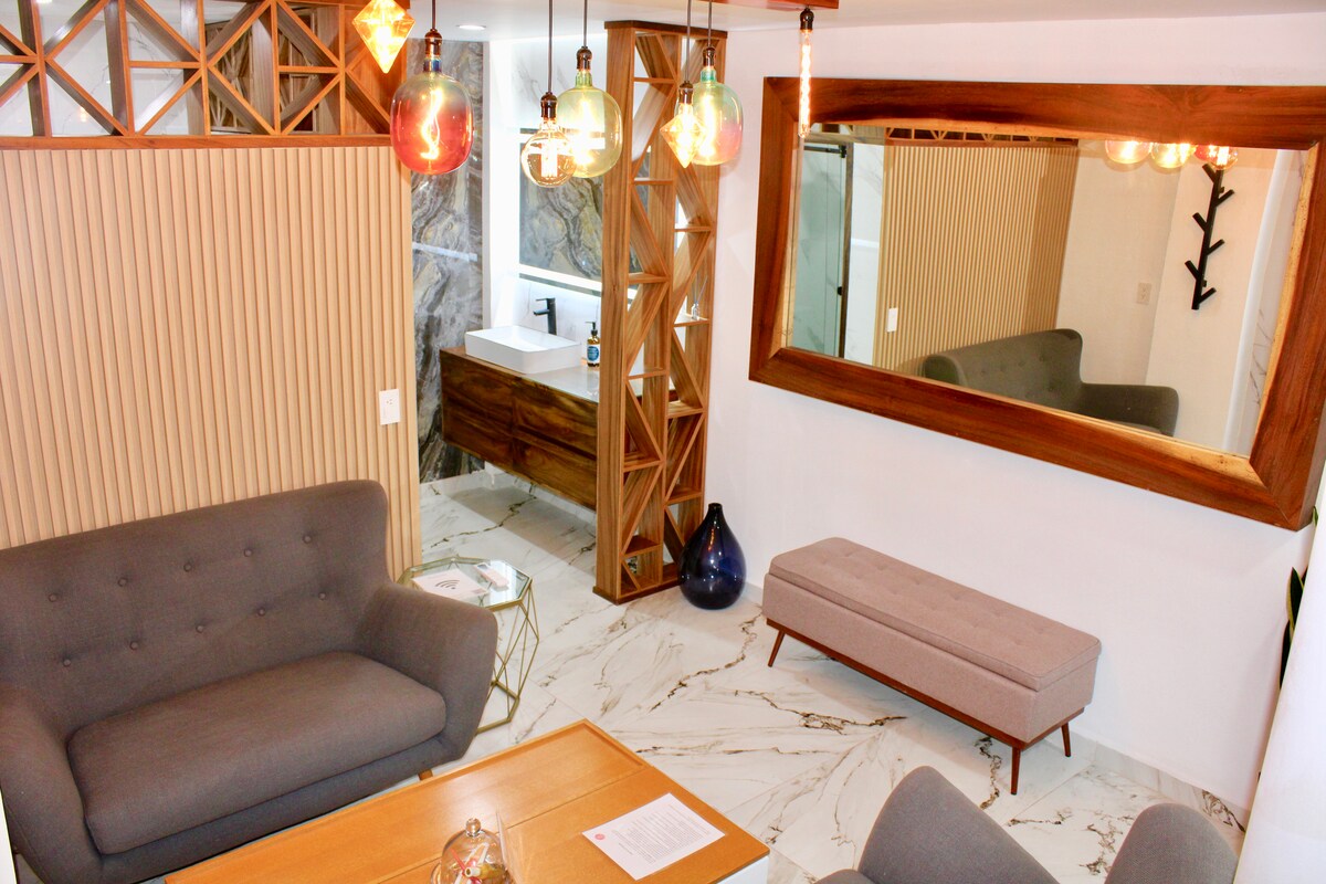 Suite Tamarindo on erillinen yksikkö, jossa on maaseinät, tilava sisä- ja ulkokylpyhuone, työalue, suuri komero ja vaate ja kaksi yhden hengen vuodetta, jotka voidaan siirtää vierekkäin muodostamaan king-vuode, joka edistää rauhallisempaa nukkumista kuin täysin jaettu vuode. Suunnittelimme suuren osan kiinteistöstä hyödyntämään passiivista jäähdytystä kestävyyttä silmällä pitäen, joten tämä sviitti pysyy ihanan viileänä. Siinä on kattotuuletin, joka pitää sen raikkaana ja ilmavana lämpimimpien kuukausien aikana.