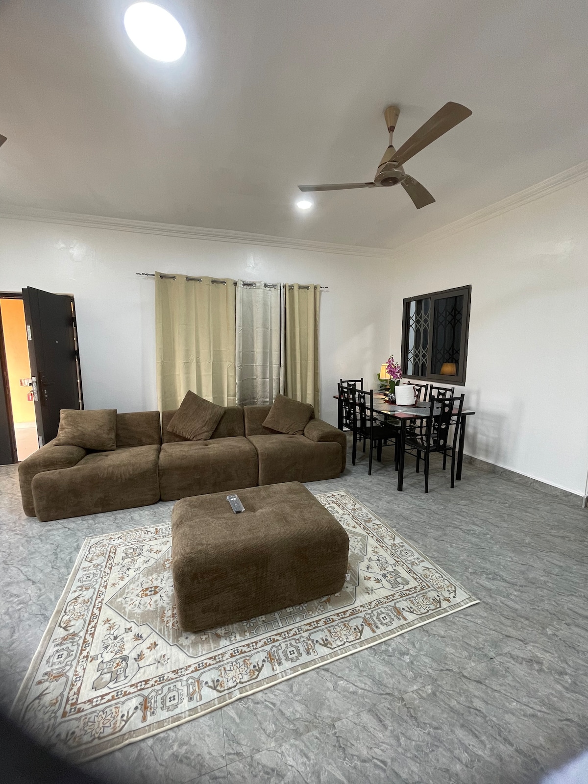 This is a comfortable apartments - Fully Air-condition in all rooms - Neat and comfortable sofa with dinning set - Comfortable beds in the room - Well decorated walls with flowers and portraits - Constant water supply, electricity with stand-by generator - Its in a good environment, secure location with installed cameras, walled and gated.