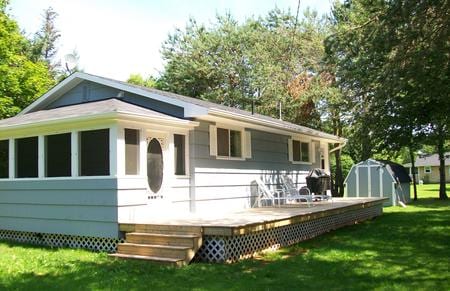 Palaa kallion huipulta Northumberlandinsalmella, 3 minuutin kävelymatkan päässä kauniista hiekkarannasta. 1900 neliöjalkaa. Mökki on täysin kunnostettu sisältä, ja siellä on uusi keittiö, kylpyamme, lattia, kaikki kalusteet ja laitteet vaihdettu. 30 jalkaa. Etukannella on katettu ja avoimet osiot. Ruostumattomasta teräksestä valmistetut kodinkoneet, mikroaaltouuni, astianpesukone, TV/DVD-soitin, Roku TV, surround-stereo, täysikokoinen kylpyamme ja suihku. Kolme makuuhuonetta, kuusi vuodepaikkaa. Vauvansänky saatavilla pyynnöstä.