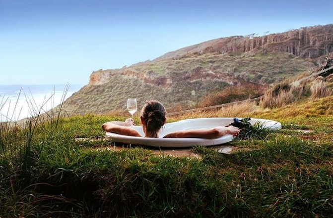 Luksusta auringonlaskussa – merinäkymä ja kylpy