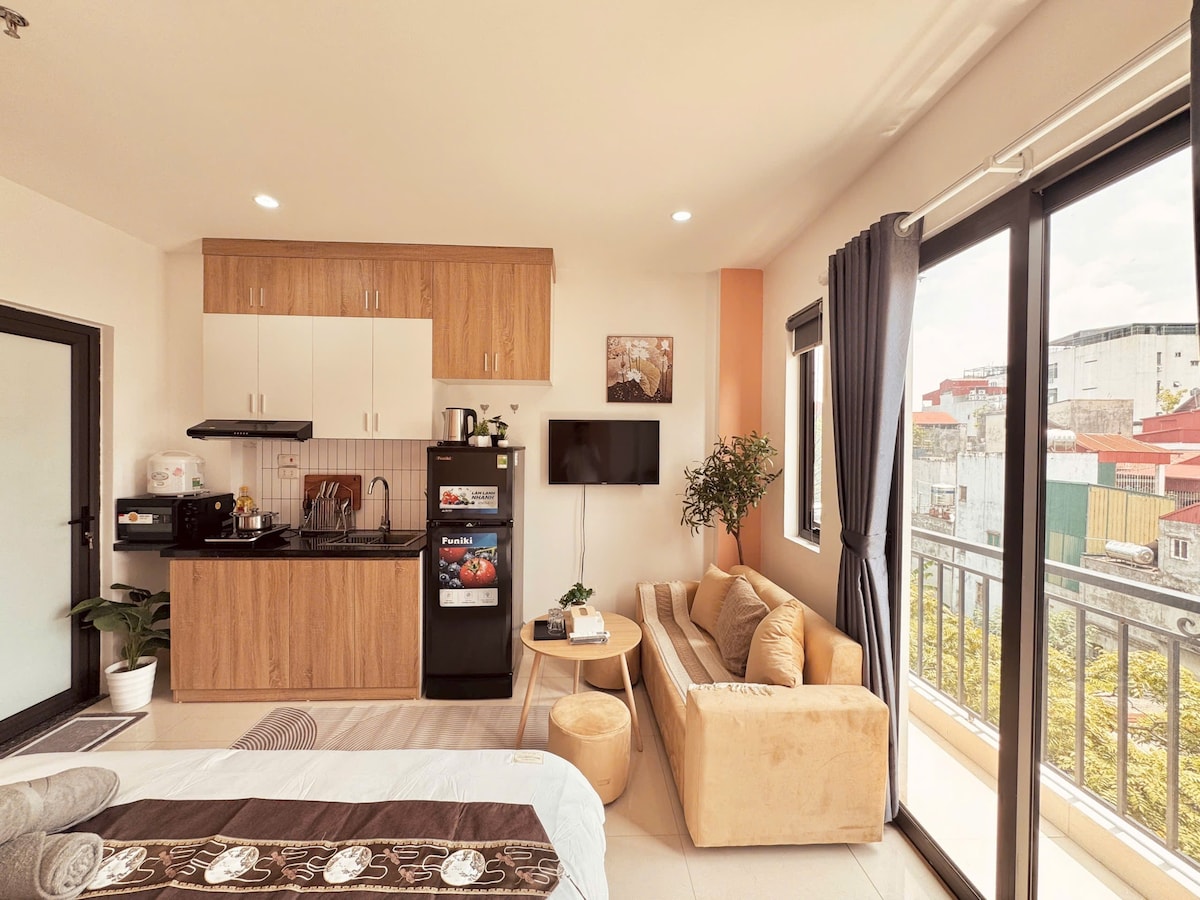 Vastarakennettu rakennus, joka sopii sekä lyhytaikaisiin että pitkäaikaisiin majoituksiin. Siinä on täysin varustettu yksityinen keittiö ja pesukone sekä jaettu puutarha vain vieraille. Kohde sijaitsee osoitteessa 48 Bich Cau Street Dong Dan keskustassa. Kohde on valoisa ja tilava, ja siinä on suuret ikkunat. Vain 3 minuuttia kirjallisuuden temppeliin, 5 minuuttia Hanoin rautatieasemalle ja 10 minuuttia Hoan Kiem -järvelle, vanhaan kaupunkiin ja Ba Dinh -aukiolle. Ilmainen kyyti lentokentälle yli 3 yön majoituksista
