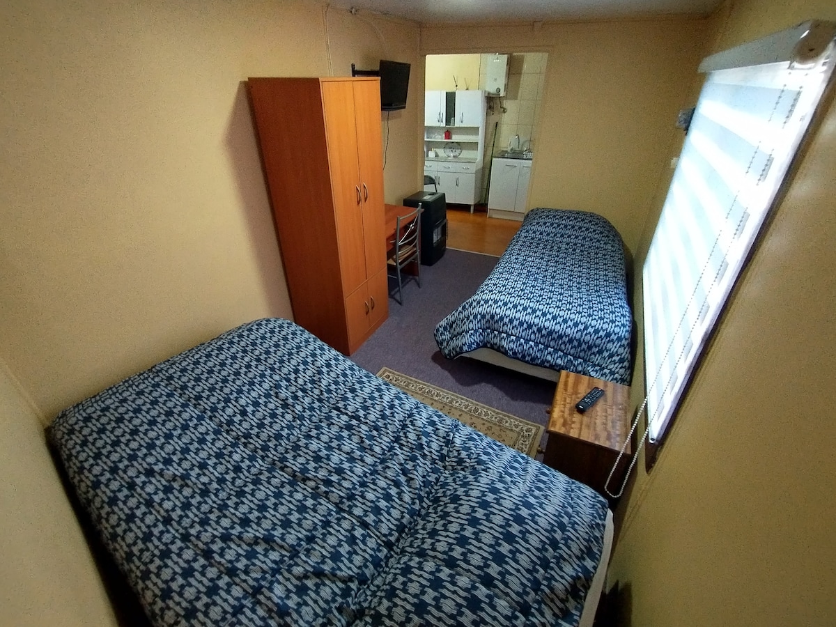 Mökki sijaitsee erinomaisella alueella, muutaman askeleen päässä Valdivian keskustasta! Et tarvitse autoasi liikkumiseen keskustassa! 7 minuutin kävelymatka rannalta ja korttelin päässä ostoskeskuksesta. Siinä on varusteltu keittiö 5 vuodetta, 2 kylpyhuonetta, pysäköinti, wifi, kaapeli-tv. Olemme läsnä oleskelusi aikana ja huolehdimme kaikesta, mitä tarvitset, olipa kyseessä tietoa vierailupaikasta tai jotain, mitä tarvitset mökissä!