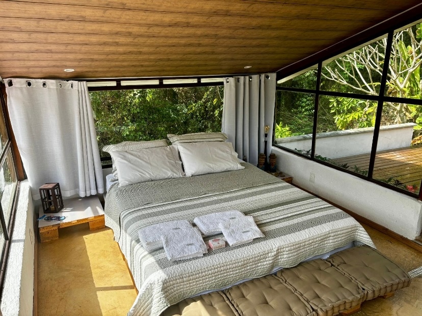 MAINOKSEN ARVO VASTAA 1 PARIA PÄIVITTÄIN. Hyväksymme varauksia vähintään kahdeksi yöksi. Jokainen ylimääräinen henkilö lisää vain vieraiden kokonaismäärän kyselyyn. YKSINOMAINEN JA TÄYDELLINEN HUONEISTO, 2 sviittiä, olohuone ja keittiö, jossa on avoin konsepti, hiljainen, turvallinen ja viihtyisä enintään 4 hengelle. Remontoitu tila. Siellä on kaikki uudet ruokailuvälineet, vuodevaatteet ja kylpyhuone. Lähellä Costãon sisäänkäyntiä ja rantaa, noin 2 minuutin kävelymatka. Näkymä Pedra do Elefantelle ja Atlantin metsän vehreydelle.