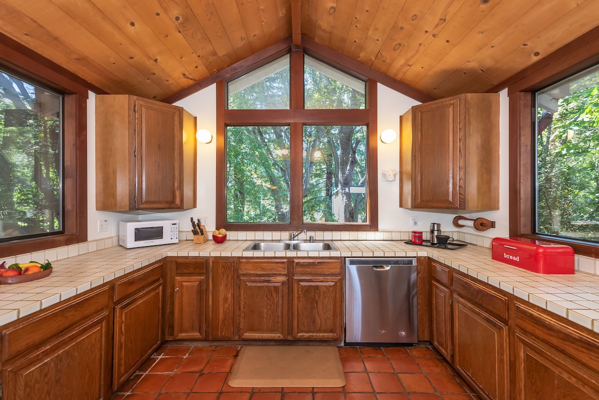 Kirkas ja ilmava moderni kohde, joka sijaitsee korkeiden punapuumetsien keskellä rauhallisella alueella. Lyhyt kävelymatka rannalle ja joelle, ja hyvät ravintolat naapurustossa. Lyhyt ajomatka golfkentälle, punapuumetsään, rannikolle, Guernevilleen ja viininmaisteluun. Talossa on kaikki mukavuudet, joita tarvitset rentouttävään lomaan mihin aikaan vuodesta tahansa - täysin varusteltu keittiö, useita sisä- ja ulkoalueita rentoutumiseen tai leikkimiseen, ja helppo pääsy kaikkeen, mitä Russian River -laakso tarjoaa! TOT #1987 LIC24-0206 Enintään 3 autoa