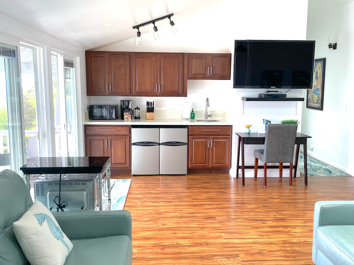 Mökki yksityisellä, aidatulla, 1 eekkerin rantatontilla. Ui, surffaa, melo kajakilla ja snorklaa pihalta. Katsele delfiinejä ja veneitä lahdella. Kävelyetäisyydellä manta ray, snorklaus, kajakki, valas- ja delfiiniretket, golf, ravintolat, elokuvateatteri ja ulkoilma-taidemarkkinat. Kahden huoneen sviitti. King-vuode. Olohuone. Täysin varustettu keittiö. Kylpyhuone, jossa on suuri suihku. Katettu terassi, jolta on osittainen merinäkymä. Kajakkien ja SUP-lautojen käyttö. Varaa yksin tai Ocean Cottage -mökillä. Vain pariskunnille ja yksin matkustaville.