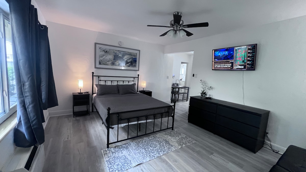 Yksikkö on täysin uudistettu, tuore maali, uusi keittiö, uusi kylpyhuone, uudet laatat, rakennus, jossa on yksityinen piha ja turvakamerat pysäköintiin, 60" TV, jossa on ilmainen Netflix. Trooppinen maisema takapihalla ja grillillä. Huoneisto on kävelymatkan päässä Young Circlestä, ja Hollywoodin keskusta on lähellä ravintoloita ja yöelämää. Se sijaitsee noin 2,5 mailin päässä kauniista Hollywood Beachistä ja Etelä-Floridan parhaasta rantakadusta. Muistivaahtopatjat sekä makuuhuoneessa että olohuoneen vuodesohvalla.